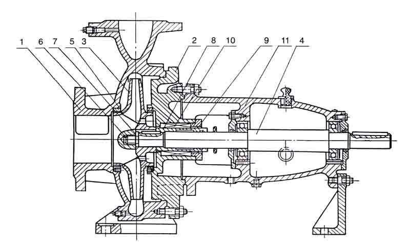 1.泵體 2.泵蓋 3.葉輪 4.軸 5.密封環(huán) 6.葉輪螺母 7.制動墊圈