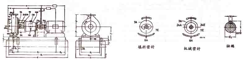 HPK—S型泵32—125至250—315型無中間聯(lián)軸器的安裝圖和尺寸表(底座尺寸符合IS03661和DIN24259標準)