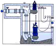 ●導(dǎo)軌自動(dòng)耦合安裝系統(tǒng).給泵的安裝、維修帶來了極大的方便.人可不必為此而進(jìn)出污水坑。