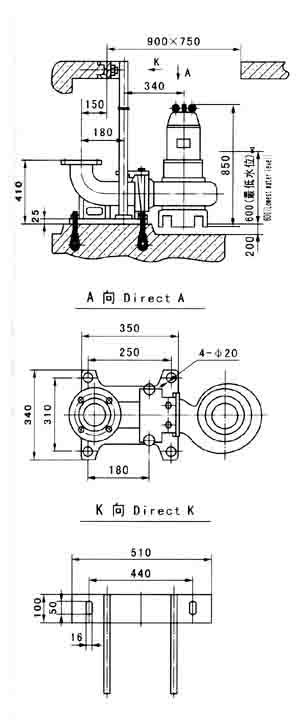 注:JYWQ型自動攪勻排污泵其安裝尺寸參照WQ型潛水排污泵進(jìn)行。