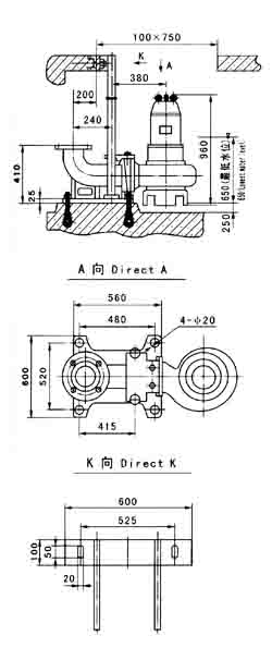 注:JYWQ型自動(dòng)攪勻排污泵其安裝尺寸參照WQ型潛水排污泵進(jìn)行。