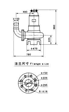 說明:JYWQ型自動攪勻潛水排污泵性能參數(shù)等同WQ型潛水式排污泵(見上表)。外形尺寸見下頁。