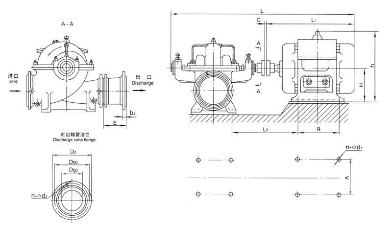 十一、SH型泵安裝尺寸圖及表(不帶底座)