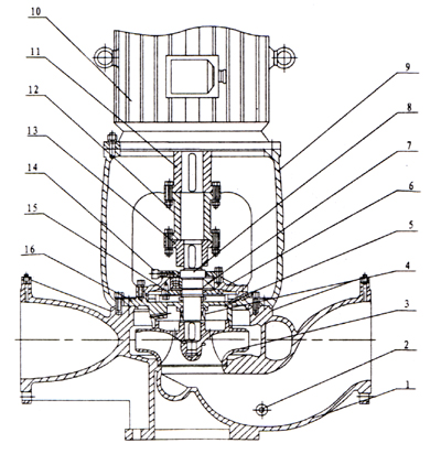 CIHG立式離心泵,在結構上進行大膽的改進設計,使結構件間的配合更加穩(wěn)固和精確。泵的外觀結構由電機、聯(lián)接體和泵體組成。傳動部件由電機軸、聯(lián)軸器、軸承座內的軸承、泵軸和葉輪組成。